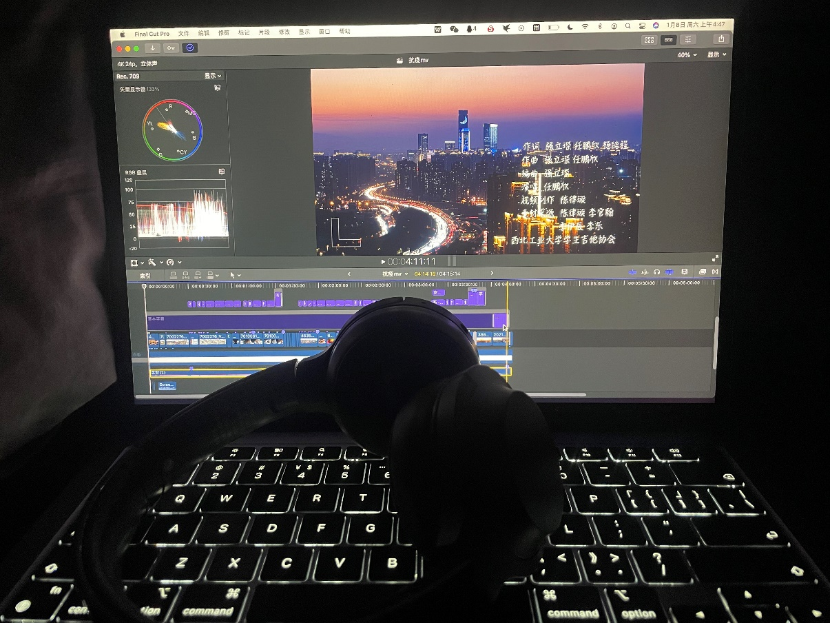 在抗疫过程中,医护人员与志愿者们奋勇冲到一线,用生命来捍卫这座城市。为了致敬一线抗疫人员,2020级人工智能专业本科生任鹏欣和他的小伙伴们一起创作原创歌曲《念安》。由于条件限制,创作团队只能在宿舍编曲、填词、录音与制作视频,历时一周完成了歌曲的创作。其中,2020级任鹏欣同学参与了歌曲的作曲、填词等工作,并担任这首歌的主唱。