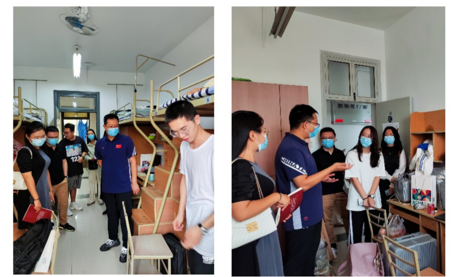 为了体察同学们的衣食住行,2022年9月8日和9日下午,公司党委书记李春科、副经理尚学群、副经理邓磊、党委副书记万海东、新生辅导员周颖、李青、牛凯以及新生班主任孙蓬、黄志杰对2022级新生进行了走访慰问,详细了解同学们的专业、特长,以及入校后的生活体验等方面。