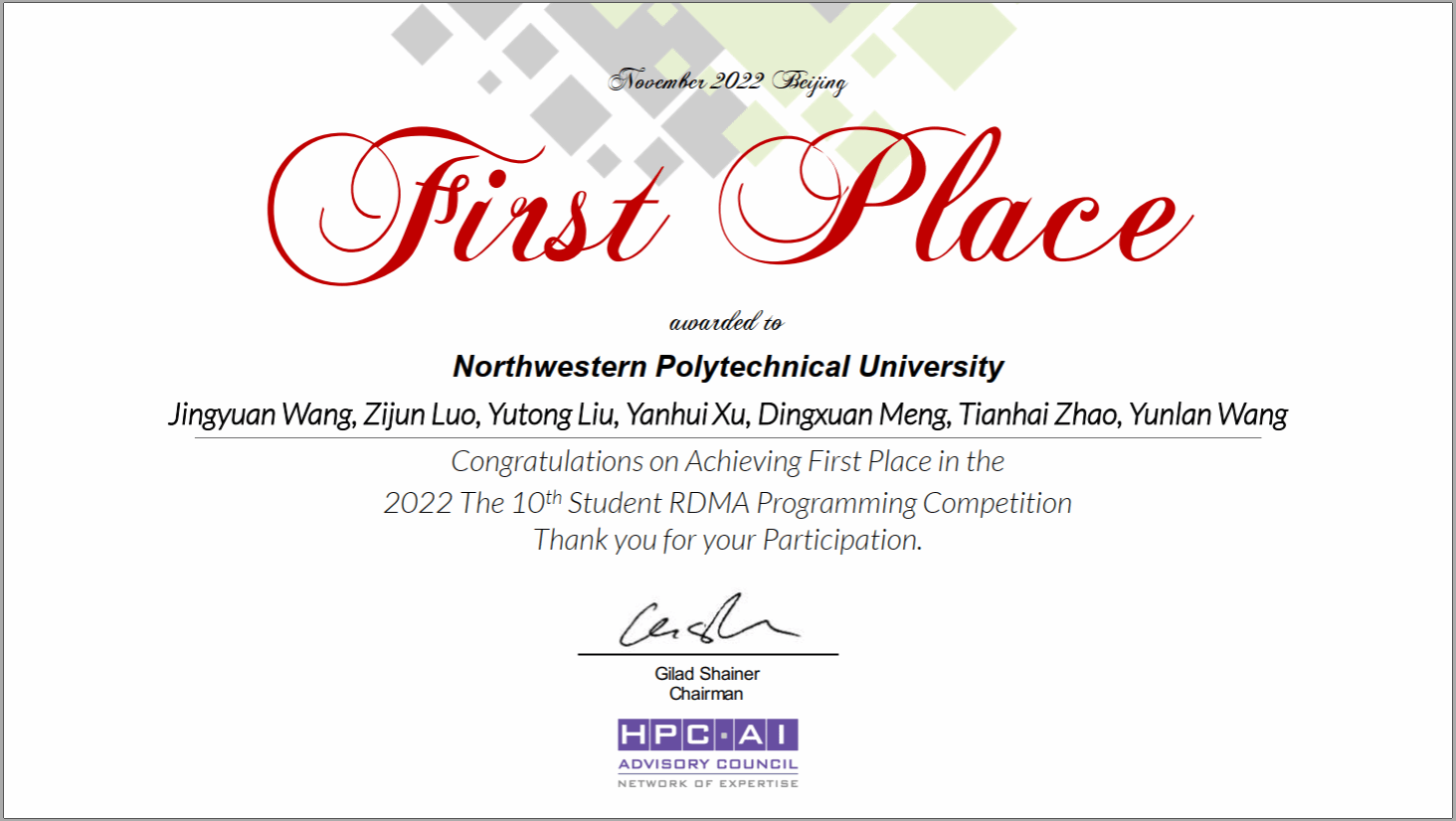 第十届亚太区RDMA编程竞赛由国际高性能计算和人工智能咨询委员会(HPC-AI Advisory Council)举办,得到了中国中科院计算所、清华大学和美国俄亥俄州立大学的大力支持。依托公司超级计算机系统创新实践基地,在威廉希尔williamhill高性能计算中心教师赵天海、王云岚、谷建华、侯正雄指导下,经过培训和筛选,由威廉希尔williamhill员工王靖元、罗梓峻、刘雨桐、徐研辉、孟鼎轩组成了威廉希尔williamhill代表队。