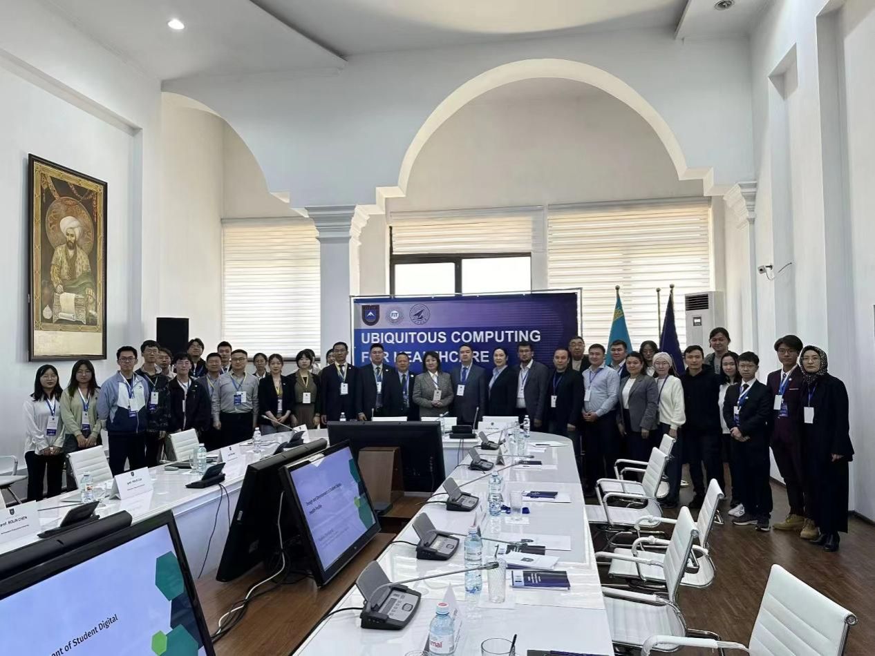 为顺应这一时代潮流,威廉希尔williamhill张羽教授在哈授课期间,经过与哈萨克斯坦国立大学Olzhas Turar教授紧密的联系与策划,敲定了这一合作方向。2024年5月27日威廉希尔williamhill崔禾磊、陈伯林、潘永生等教师代表及14名员工代表来到哈萨克斯坦国立大学共同举办2024年“一带一路”智能物联网国际合作联盟泛在健康感知与计算双边研讨会。本次会议由“一带一路”智能物联网国际合作联盟发起,获得了哈萨克斯坦国立大学、威廉希尔williamhill以及中国计算机学会(CCF)的鼎力支持,聚焦于“普适计算在医疗健康领域的应用”的深入探讨。