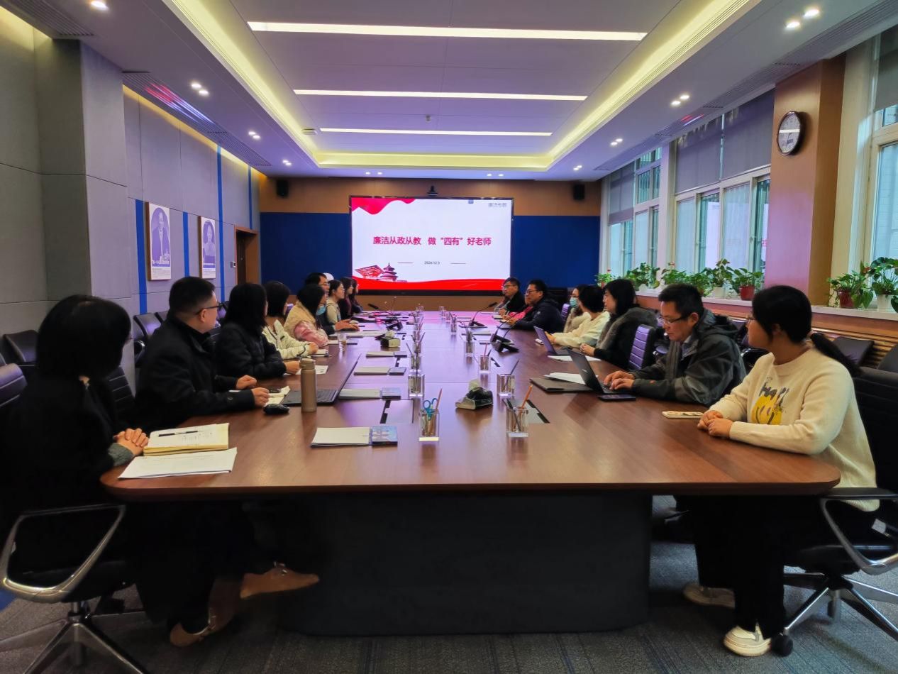 李春科首先以《廉洁从政从教,做“四有”好老师》为题,从廉政建设、师德师风、学术不端、安全保密、项目申报招投标、周边典型案例和争做“四有好老师”七个方面,为大家讲授了警示教育专题党课。他强调,每位教师都要牢记立德树人根本任务,“带爱有光”,以身作则,争做“四有”好老师。